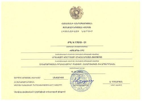 The company's head office is located in Kotayk region, city Abovyan 20th building, 2nd industrial zone, and its branches are at Yerevan at 14 Buniatyan Street and "Garage Masters Mall".