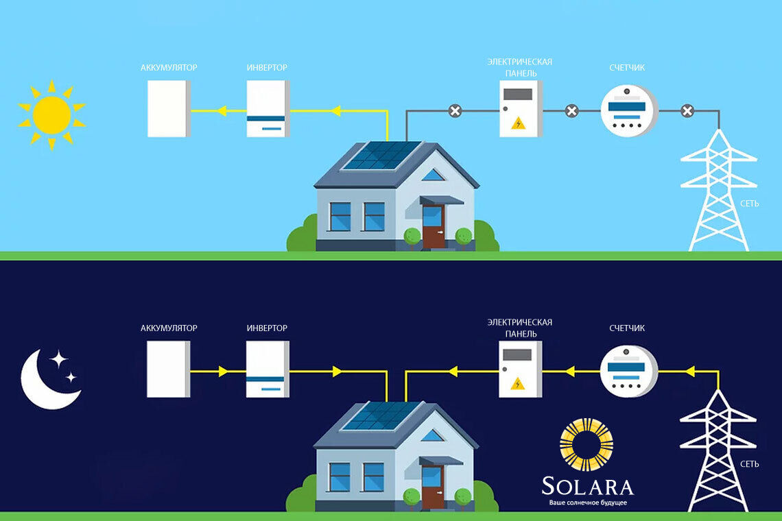 Солнечные батареи работают, накапливая избыточную энергию, вырабатываемую вашими солнечными панелями. Когда светит солнце и ваши солнечные батареи производят больше энергии, чем потребляет ваш дом, избыточная энергия отправляется в аккумулятор для хранения. Позже, когда ваши солнечные панели не производят достаточно энергии для питания вашего дома, энергия, хранящаяся в батарее, используется для удовлетворения ваших энергетических потребностей.